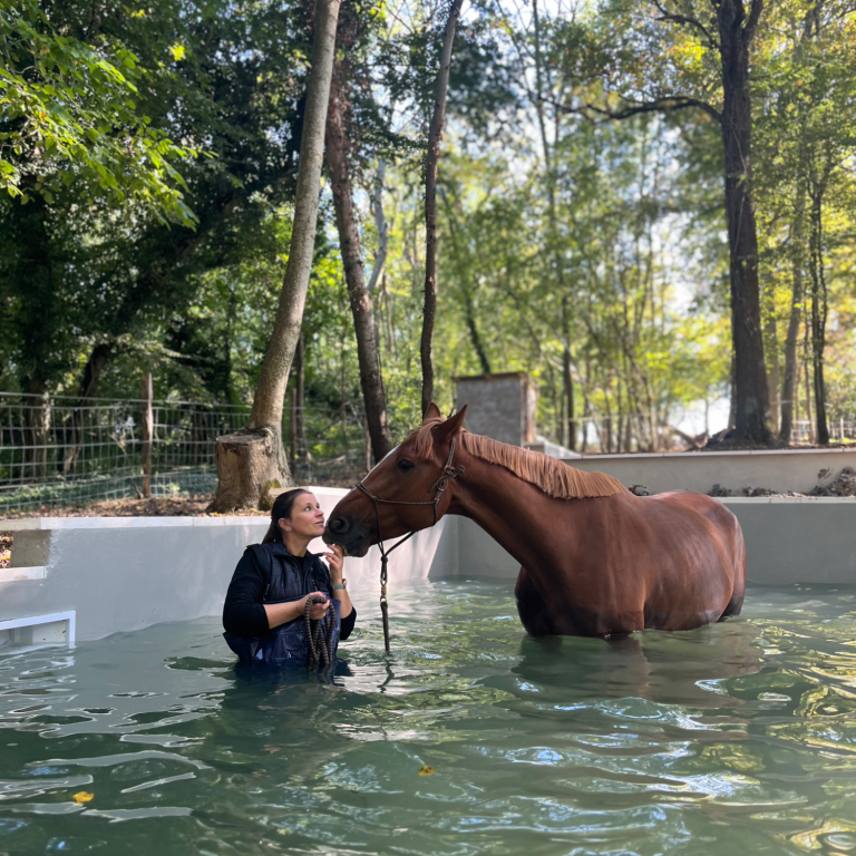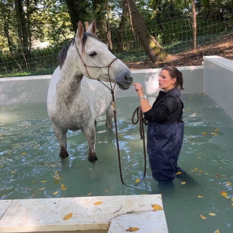 Imaginez votre cheval, immergé dans une eau claire, avançant calmement, porté par l’apesanteur.